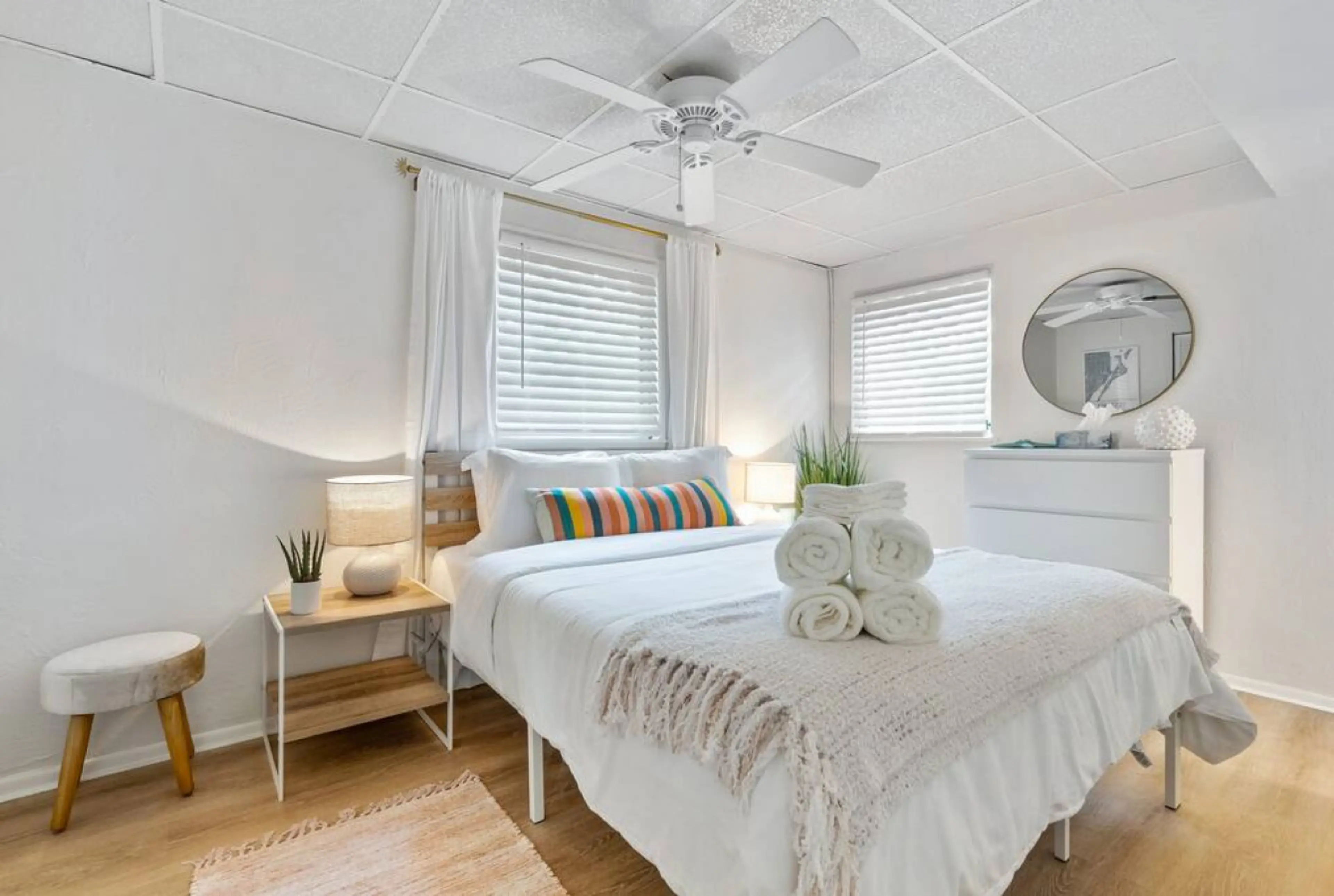 We loved the property’s location on the bay and loved that it is only a short walk to the gorgeous beach across the street. Located close to restaurants and activities as well. The place is smaller but very cute and comfortable inside and had everything that we needed. Property manager was very nice and responsive. Would stay here again!